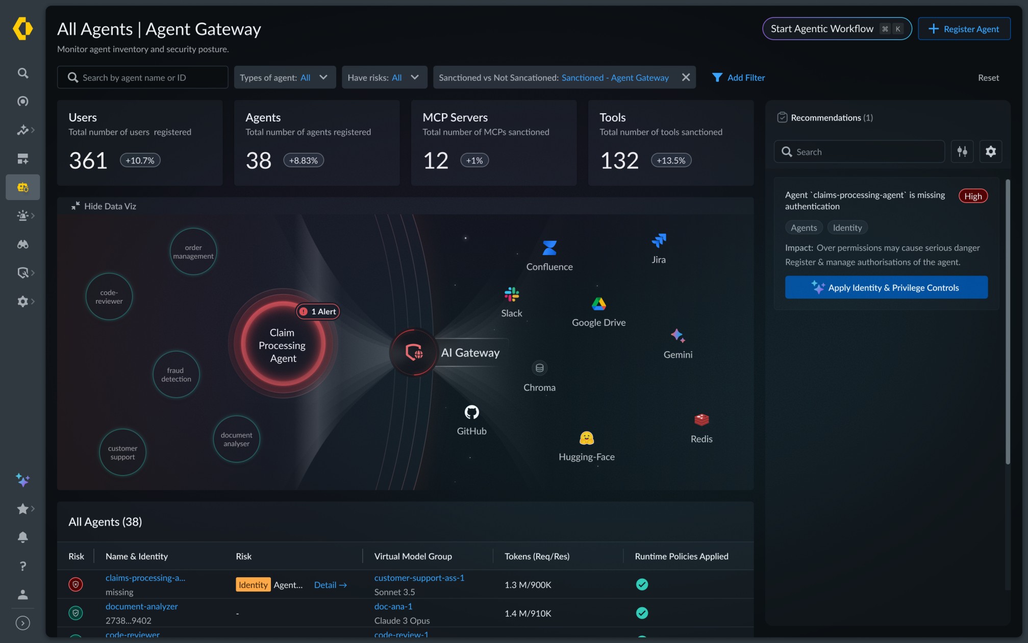 Discover AI agents across SaaS platforms, cloud services, low-code tools and custom environments. Gain centralized visibility into what agents are doing, what they can access and how they make decisions — eliminating blind spots from shadow or third-party agents.